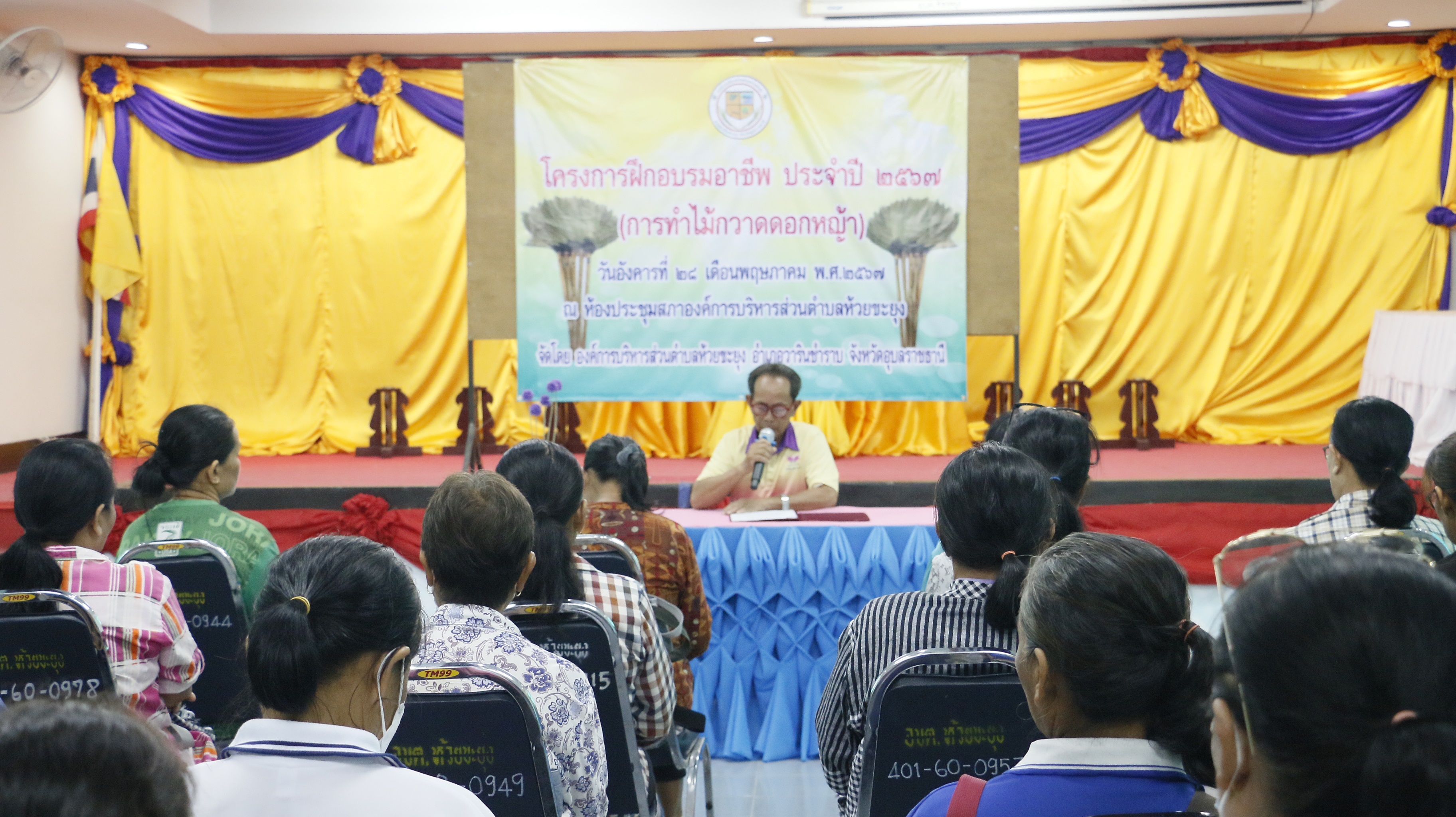 วันอังคาร, 28 พฤษภาคม 2567 11:4528 พฤษภาคม 2567 เวลา 09.00 น. นายกำพล สายลาด นายกองค์การบริหารส่วนตำบลห้วยขะยุง มอบหมายให้ นายธีระพล ลัทธะโล รองนายกองค์การบริหารส่วนตำบลห้วยขะยุง เป็นประธานเปิดโครงการฝึกอบรมอาชีพ (การทำไม้กวาดดอกหญ้า) ประจำปีงบประมาณ พ.ศ.2567 ณ ห้องประชุมสภาองค์การบริหารส่วนตำบลห้วยขะยุง โดยมีกลุ่มเป้าหมายเป็นประชาชนทั่วไปและพนักงานส่วนตำบล จำนวน 50 คน ซึ่งมีวัตถุประสงค์ เพื่อส่งเสริมกิจกรรมการรวมกลุ่มของสตรีแม่บ้านและประชาชนทั่วไปของตำบลห้วยขะยุง ส่งเสริมทักษะและประสบการณ์ในการประกอบอาชีพ เพื่อช่วยให้มีอาชีพเสริม มีรายได้ให้กับครอบครัวและชุมชน รวมทั้งให้ชุมชนมีผลิตภัณฑ์ที่เป็นเอกลักษณ์ของชุมชนพร้อมเผยแพร่ในโอกาสต่อไป