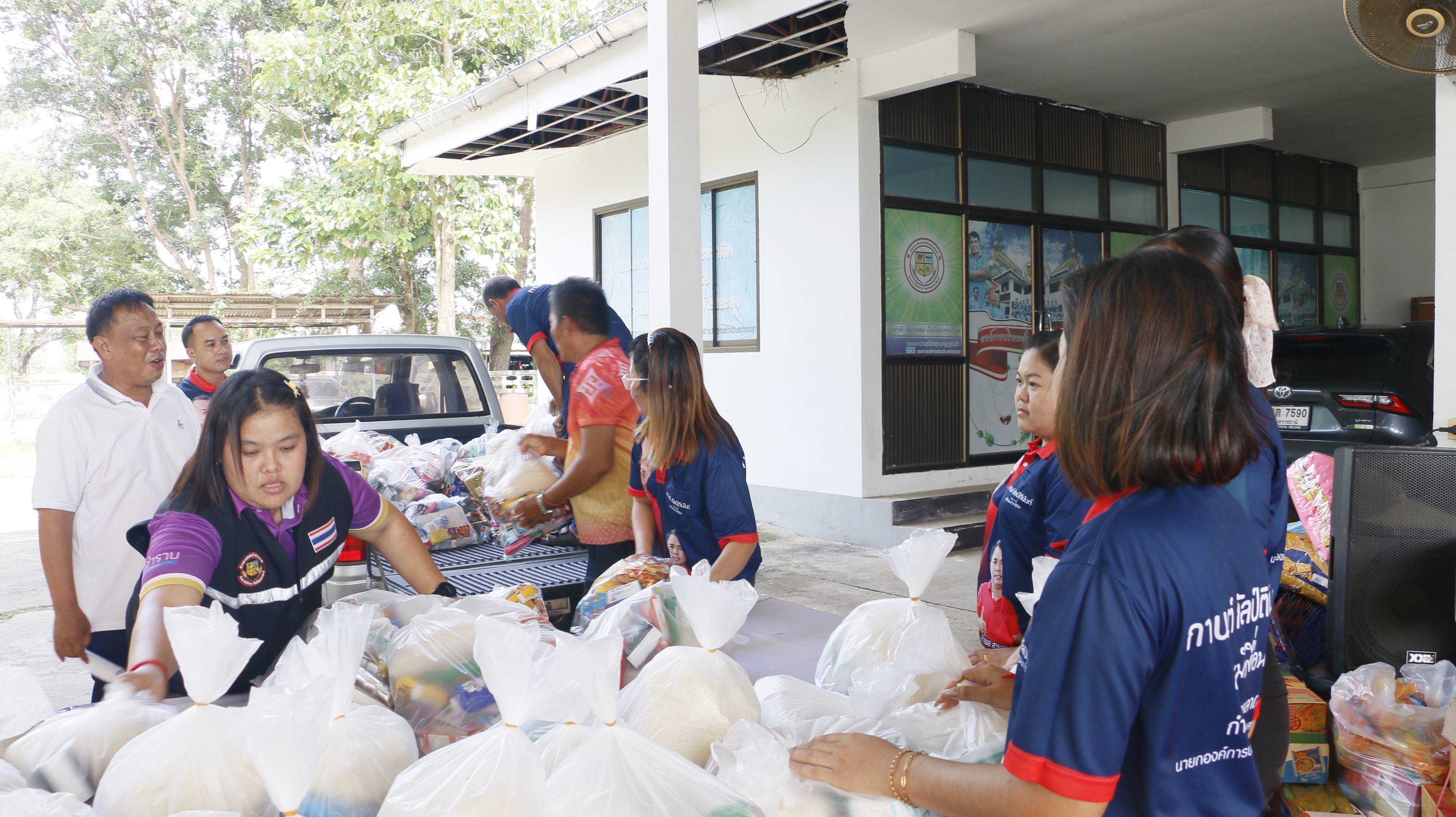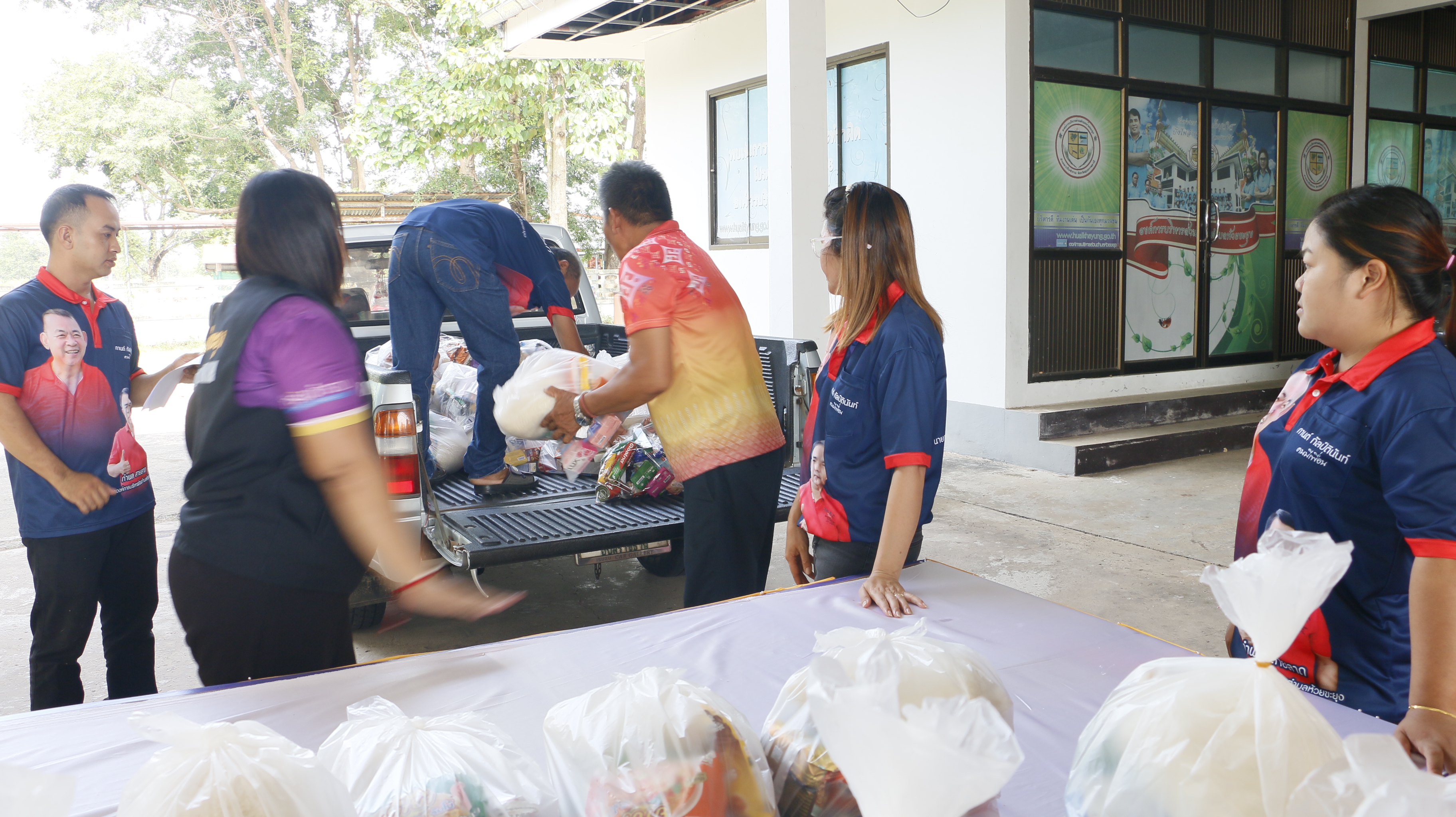 ต้อนรับนายกอบจ.อุบลมอบถุงยังชีพให้กับประชาชนที่ประสบภัยจากเหตุการณ์ไม่สงบตามแนวชายแดนไทย-กัมพูชา ในพื้นที่ตำบลห้วยขะยุง