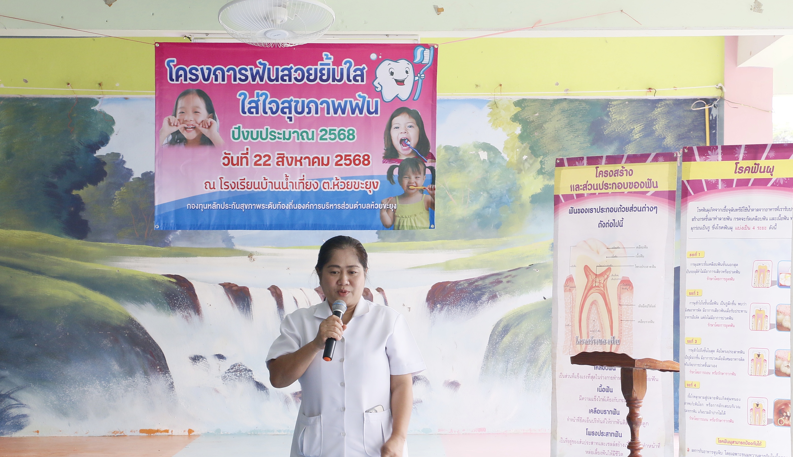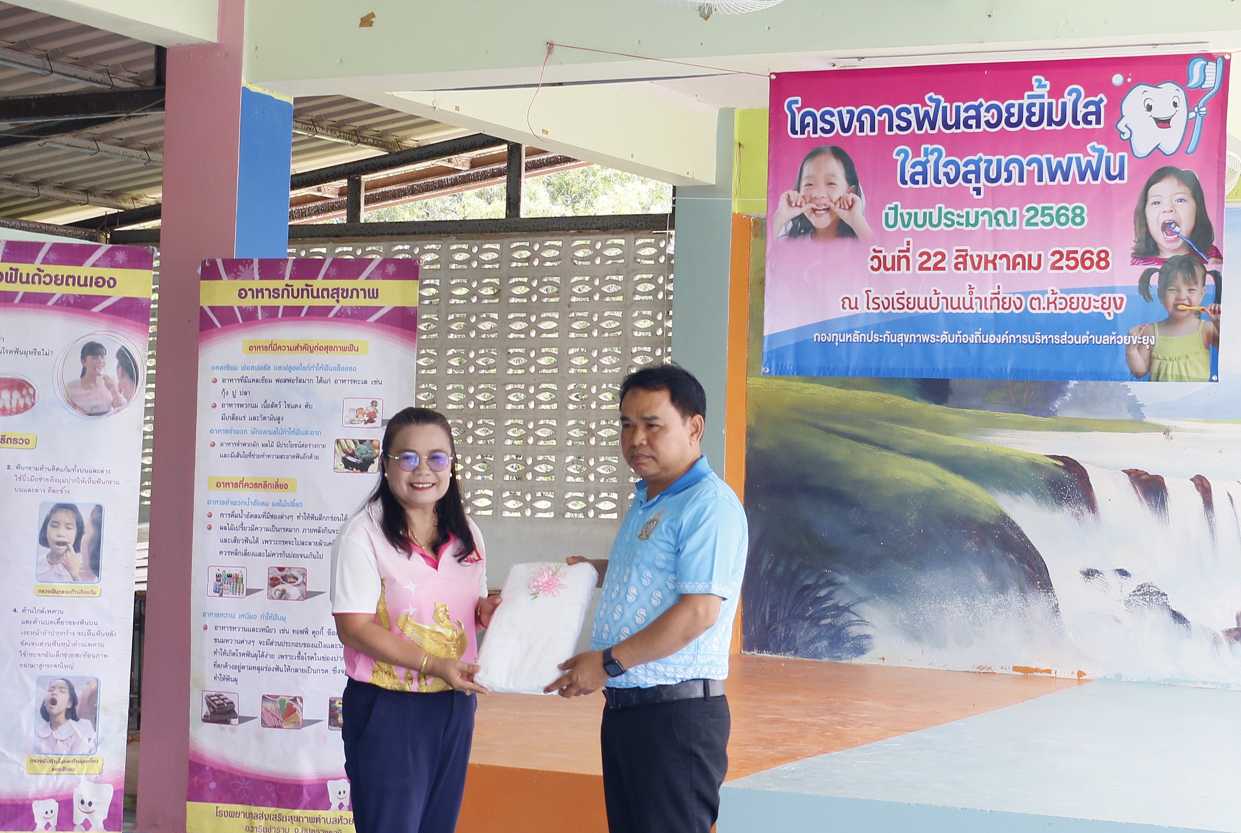 วันศุกร์, 22 สิงหาคม 2568 14:2822 สิงหาคม 2568 เวลา 09.30 น. นายกำพล สายลาด นายกองค์การบริหารส่วนตำบลห้วยขะยุง เป็นประธานเปิดโครงการฟันสวยยิ้มใสใส่ใจสุขภาพฟัน ปีงบประมาณ 2568 ณ โรงเรียนบ้านน้ำเที่ยง ซึ่งได้รับงบประมาณสนับสนุนจากกองทุนหลักประกันสุขภาพองค์การบริหารส่วนตำบลห้วยขะยุง โดยผู้เข้าอบรมประกอบด้วย ครู นักเรียน ผู้ใหญ่บ้าน ผู้นำชุมชน ซึ่งเป็นการอบรมส่งเสริมให้นักเรียนมีความรู้ ความเข้าใจในการดูแลสุขภาพช่องปากของตนเอง